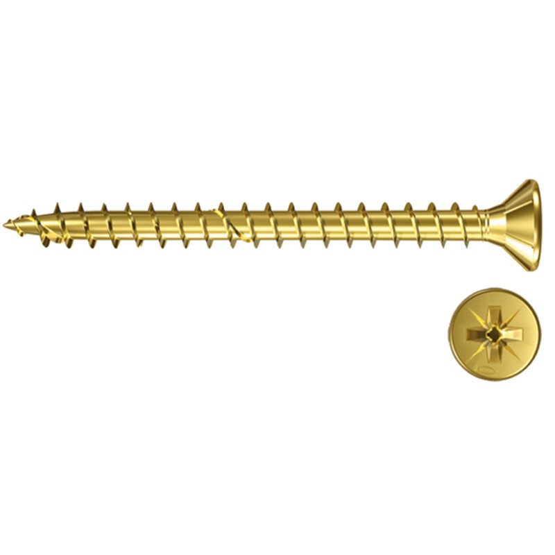 Dzeltenas cinkotas skrūves, aizsargātas pret mitrumu – tas pagarina kokskrūves ilgmūžību. Šīs skrūves ar konusveida galviņām ar frēzi skrūvē, izmantojot PZ uzgaļus. Pilnas vītnes skrūve nodrošina vislielāko spēka nodošanu, palielina divu savienotu struktūras elementu izturību pateicoties pretestībai pret izraušanu abos konstrukcijas elementos. Skrūvei ir papildu vītnes sākumā, kas nodrošina izcilu skrūves skrūvēšanos bez plaisām un atplīsumiem dēļa virspusē. Piemērotas dažāda tipa koksnei.