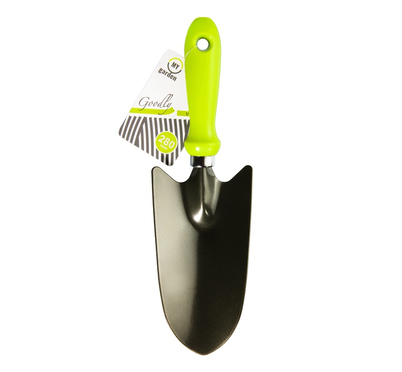 Sērijas “Goodly” platā lāpstiņa izgatavota no oglekļa tērauda ar pulverveida pārklājumu. Vieglais neilona rokturis lietošanā ir drošs un izturīgs.