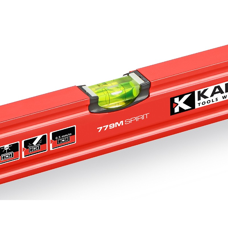 Ļoti precīzs līmeņrādis. 2 akrila actiņas. Precizitāte: 0,2 mm/m. Triecienu mazinoši gumijas uzgaļi. Ļoti precīza frēzēta virsma līdz 60 cm.