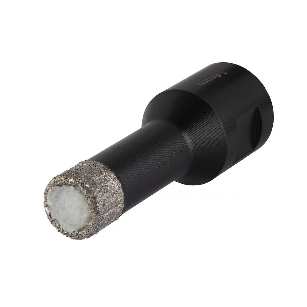 Dimanta kroņurbis ir paredzēts lietošanai ar leņķa slīpmašīnu, pēc jaunas, progresīvas vakuuma metodes izgatavoti dimanta urbji, izceļas ar ilgmūžību un lielu efektivitāti. Šie urbji ir paredzēti īpaši cietu materiālu urbšanai gan sausā, gan slapjā veidā. M14 vītņveida stiprinājums ir paredzēts leņķa slīpmašīnām. Leņķa slīpmašīna nodrošina lielus apgriezienus, kas ir nepieciešami efektīvam urbja darbam. Īpaši efektīvs veids, sausi urbjot cietus materiālus, tādus kā akmens masa, ļoti cietas akmens masas flīzes. Lietojot ūdeni, var pagarināt urbja kalpošanas laiku.
