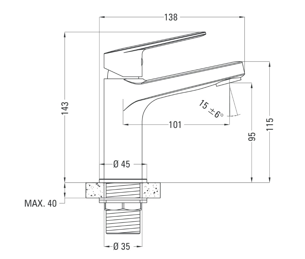 Aprīkots ar aeratoru, kas samazina ūdens patēriņu.